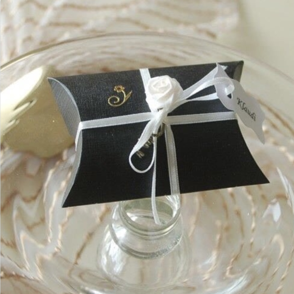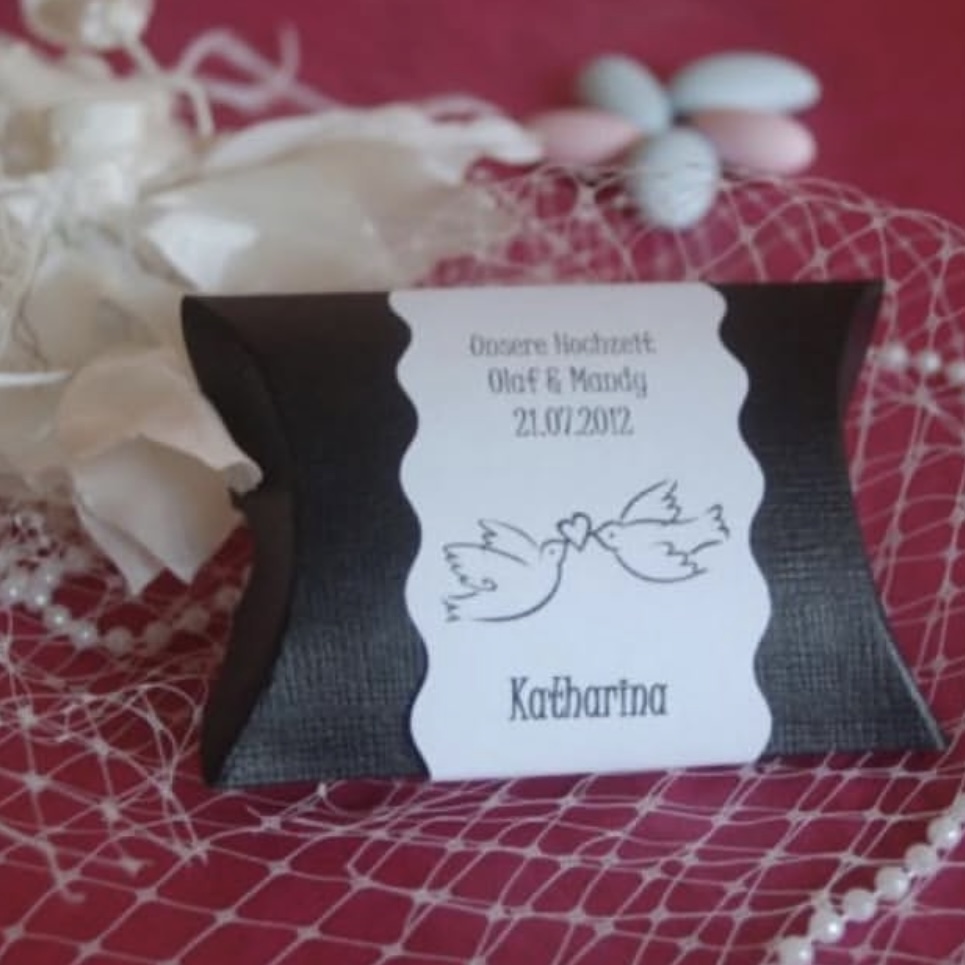Schachtel, Gastgeschenk und Tischkarte, Kissen in schwarz
